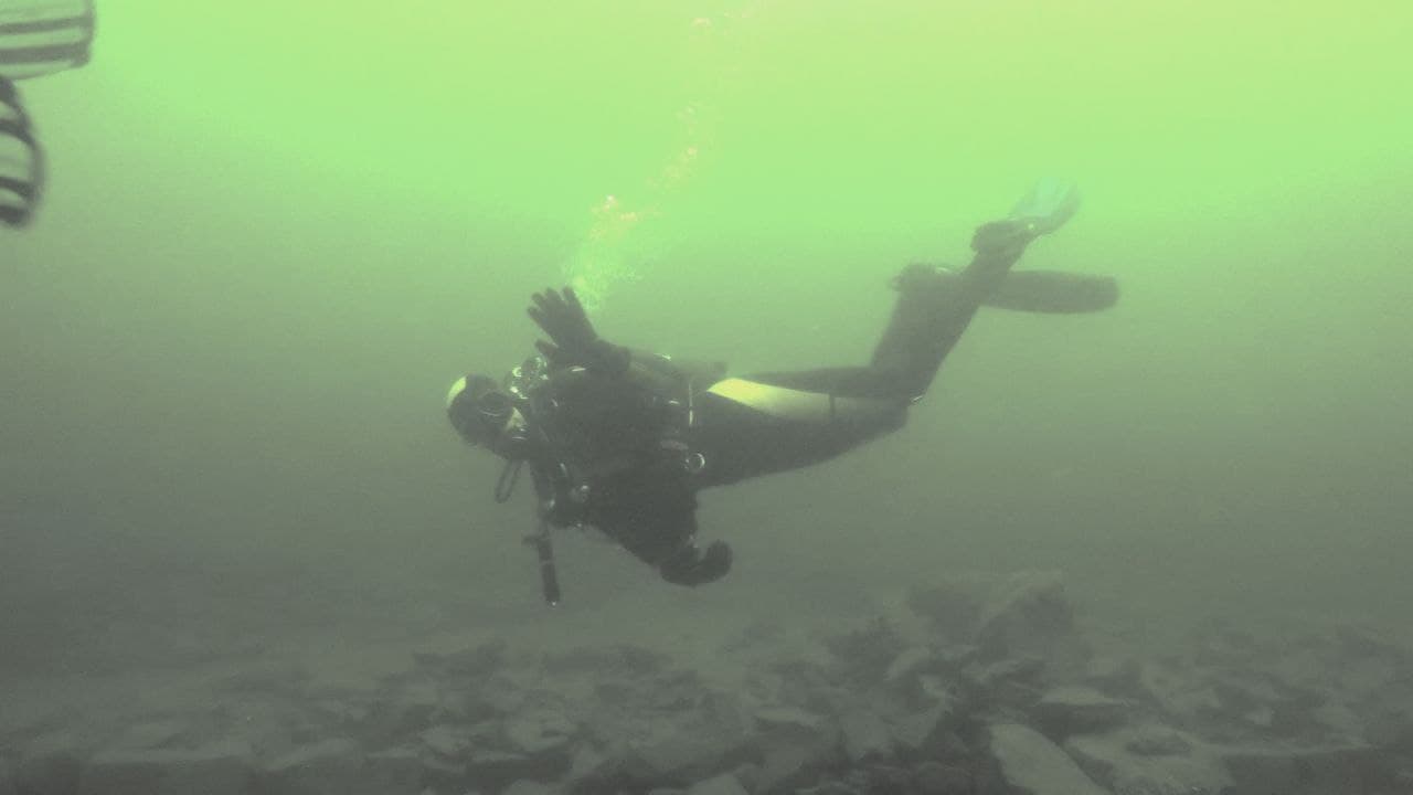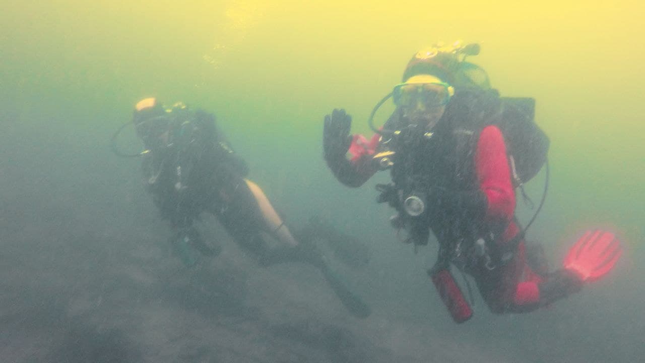 Heute gab es wieder zwei Tauchgänge im fast vollen Edersee, Einsteigsstelle Denkmal. Der erste Tauchgang führte zu den Überresten der Klostermauer. Von da ging es weiter zur Schule und zum nördlichen Seeufer. Unter den ins Wasser ragenden Büschen wurden unsere Hoffnungen auf Fischsichtungen leider nicht erfüllt. Beim zweiten Tauchgang nahmen wir den Weg über die Straße hin zur Kirche und über diverse Mauerreste zurück zur Einstiegstelle. Diesmal mit etwas mehr Fischglück. Für Edersee Verhältnisse war die Sicht noch gut, oben wird’s aber langsam etwas trüber.